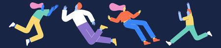A set of people in different poses in space. Flat illustration of people, men and women. Concept, abstraction, cartoon style