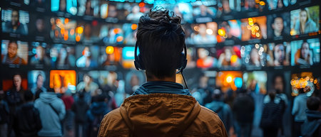 Multiple screens filled with diverse social media interfaces reflect ongoing trends and user engagement across platforms in real time.