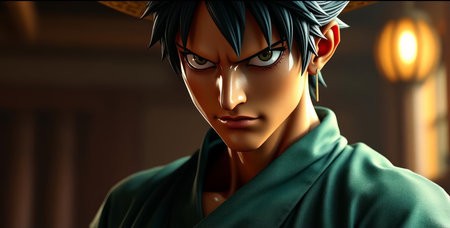 Osaka, Japan - Aug 25, 2020 : Photo of Statue of Monkey D.Luffy from Japanese manga and animation One Piece in Osaka. Luffy is the leader of a Straw hat pirate team.