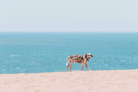 Beautiful dalmatian dog on the beach