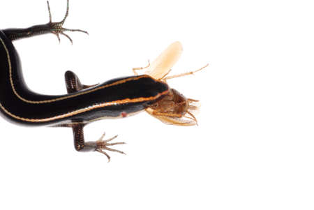 lizard eat roach, isolated on white background