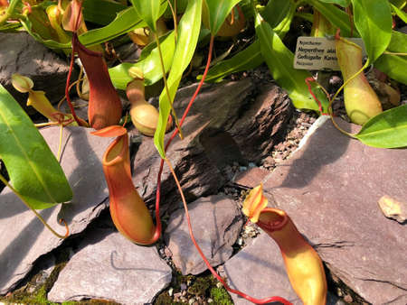 Nepenthes, Tropical pitcher plants or Monkey cups in ornamental garden