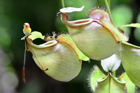 Tropical pitcher plants in the garden. Tropical pitcher plant - insects catcher plant -Nepenthe s Truncate plant. Thailand