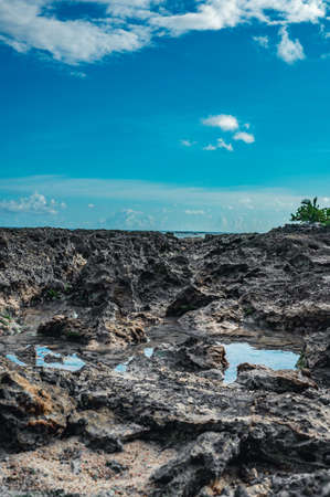 rock formation on dream coastline at Bali, near Manta Point famous Diving place, Nusa Penida with blue sky