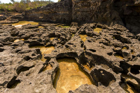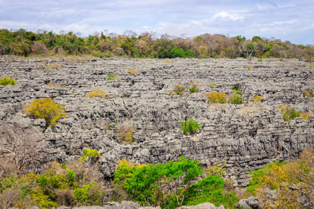 Interior of Curiously strange rock formations of fantastically eroded limestone spires, known as Tsingy in amazing Park Ankarana, Madagascar wilderness