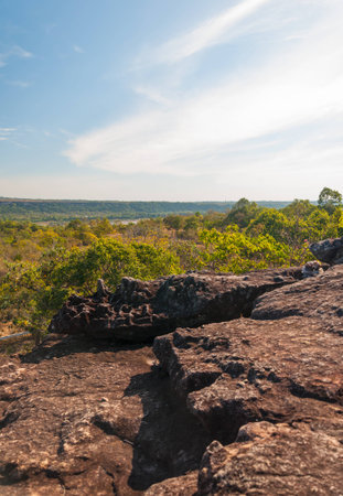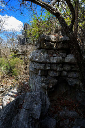 The Landscape with Forest and Rock formations at the Phu Hin Rong Kla national park near the city of Phitsanulok in the north of Thailand. Thailand, Phitsanulok, November, 2018.