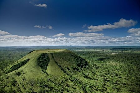 Bird's-eye view of the mountains and fields of the island of Mauritius.Landscapes Of Mauritius