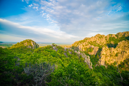 Landscape scenery of limestone mountain with the cloud and blue sky in background