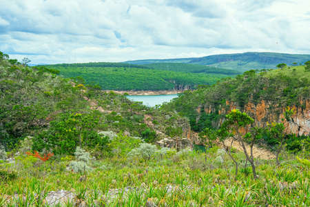 Landscape of the Cerrado Mineiro at Capitólio MG, Brazil. View to the canyons, the Lake of Furnas and the green native vegetation.