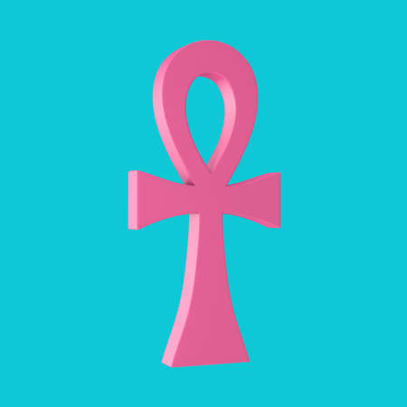 Pink Egyptian Cross Ankh Key of Life in Duotone Style on a blue background. 3d Rendering