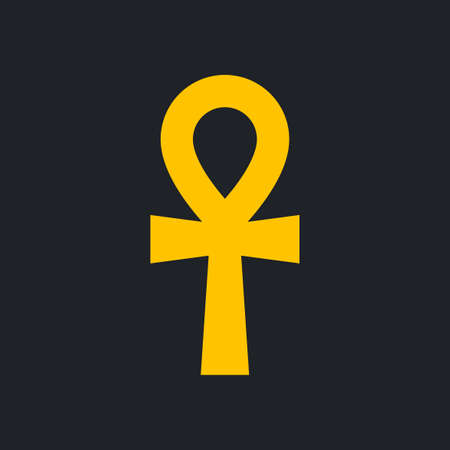 Egyptian cross ankh. Hieroglyphic symbol golden color of mystical mysteries pharaohs sign eternal well being and prosperity with symbols of immortality historical religious vector art.