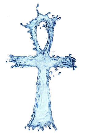 Egyptian cross Ankh made of water splash isolated on the white background