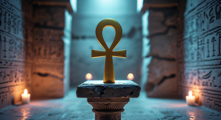 AI Generated. The symbol of life deep in the ancient tomb