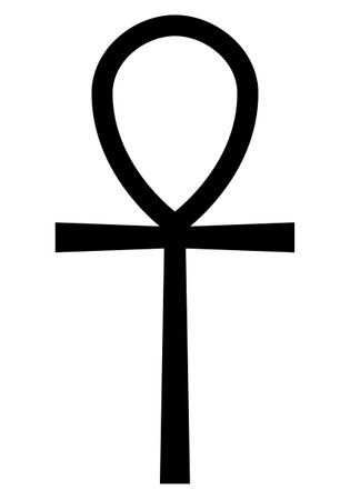 Ankh key of life, black and white vector silhouette illustration of ancient Egyptian hieroglyphic symbol