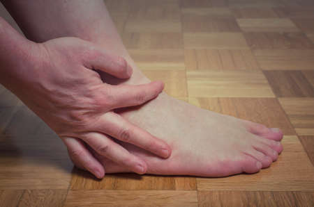 Woman having ankle,heel pain,Female feeling exhausted and painful