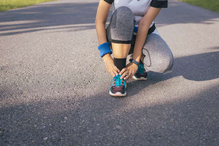 runner trying running shoes getting ready for run. healthy lifestyle.