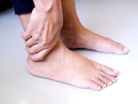 Woman having a ankle pain,Female feeling exhausted and painful,Concept for health