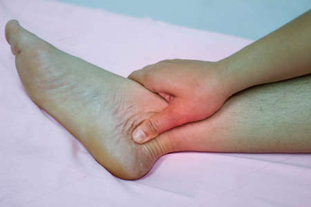 The image of the ankles of the feet showing the symptoms Have problems with muscles, and bones and tendons