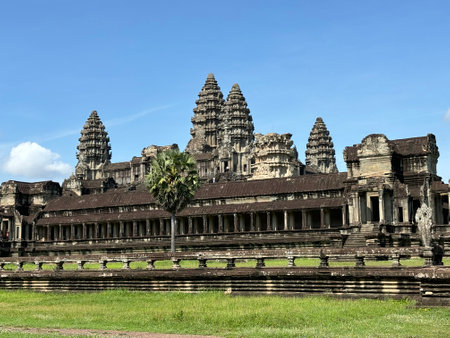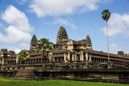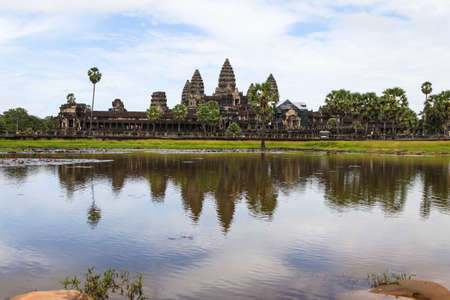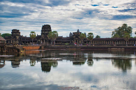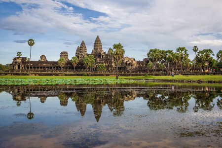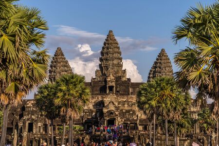 Angkor Wat, part of Khmer temple complex, popular among tourists ancient landmark and place of worship in Southeast Asia. Siem Reap, Cambodia.