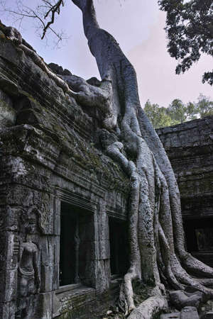 Preah Khan famouse giant tree with ancient roots, Angkor, Siem Reap, Cambodia