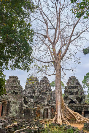 Banteay Kdei temple with silk cotton tree roots in Angkor, Siem Reap, Cambodia.