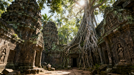 Preah Khan Temple labyrinthine charm in Siem Reap., generative AI