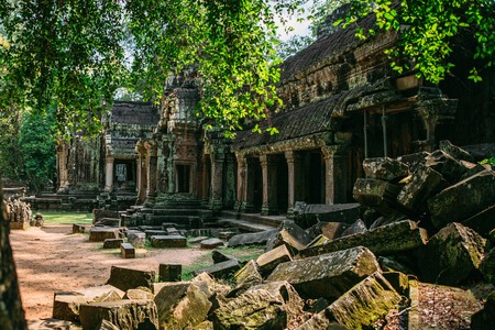 Ta Prohm, part of Khmer Angkor temple complex, popular among tourists ancient landmark and place of worship in Southeast Asia. Siem Reap, Cambodia.