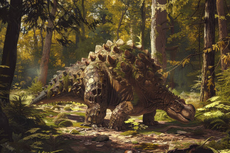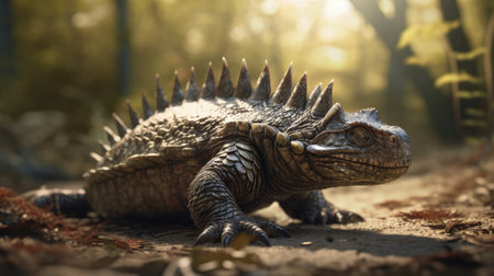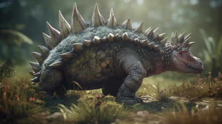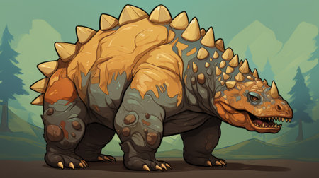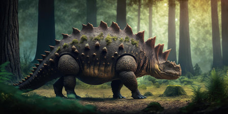 Dinosaur Ankylosaurus in the forest. This is a 3d render illustration