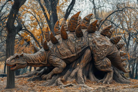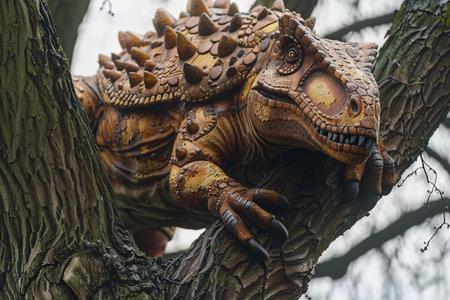 Detailed view of a dinosaur statue showcasing intricate details and texture.