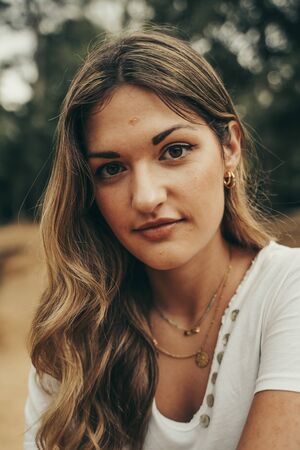 portrait of a beautiful European girl with loose hair against the background of nature. selective focus