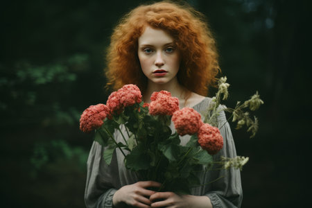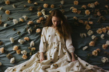 Blooming Serenity: A Womans Grace Amidst Floral Wilderness