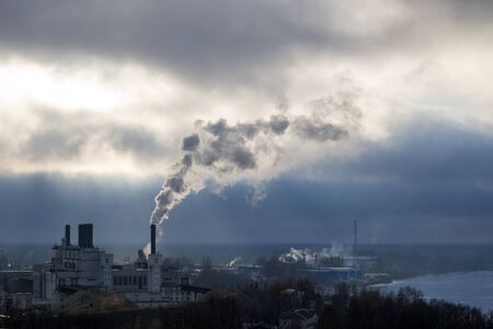 Pollution from the chimney of an industrial plant. The concept of environmental pollution.
