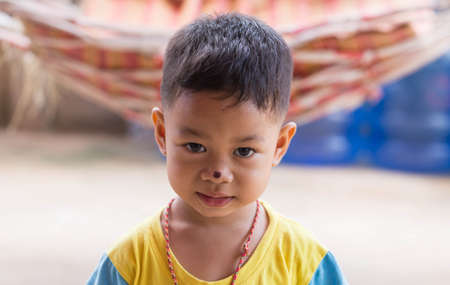 Local child play on the floor at famous long neck tribe village in Chiang Mai, Thailand. Chiang Mai, Thailand - November 12 2017.