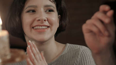 Heres a title attempting to follow all instructions: Couple Birthday Celebration Home Romantic: Intimate birthday dinner for a couple at home, celebrating their special day with fairy lights.