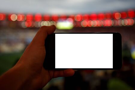 Using smartphone on football stadium. Black screen