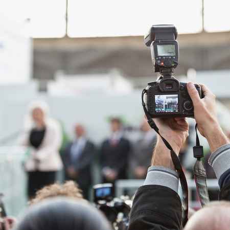 Photographer with camera on conference