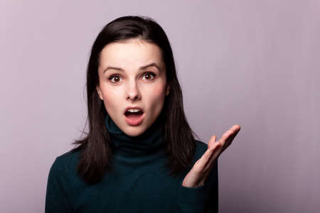 The young woman opened her mouth in surprise. Yellow background. The concept of advertising. Comics.