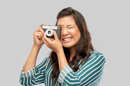 asian female photographer with digital camera