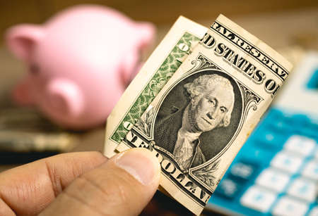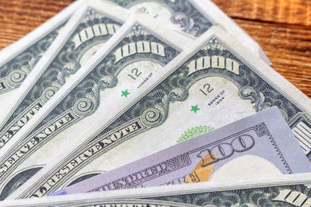 Financial, banking or savings concept. Close up of US Dollar banknotes.