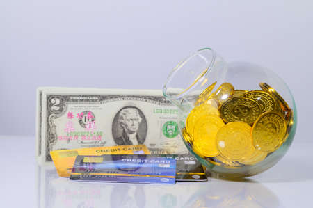 Dollar (USD) banknotes and coins, currency of United States (USA)