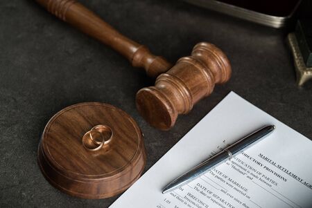 Gavel Notary's public pen and stamp on testament and last will. Notary public tools