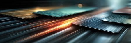 Close-up of metallic surface with a holographic gradient, sleek and modern