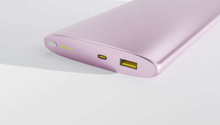 close-up on the front of a pink powerbank. powerbank for the phone. 3d render.