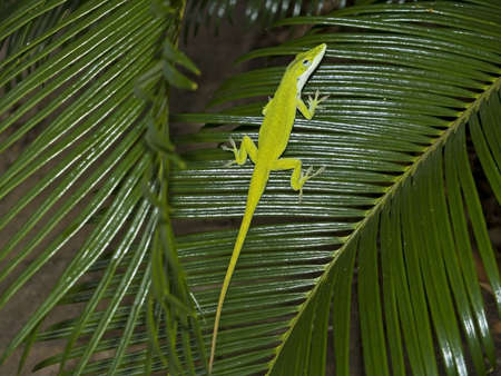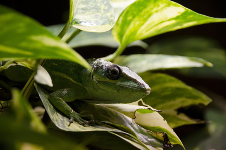 Green lizard on tropical plant