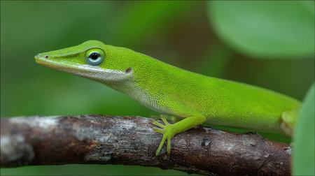 Green Anole Lizard sitting (dactyloidae) on a branch