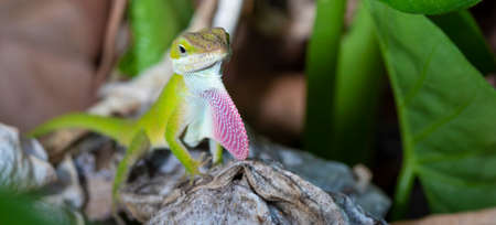 Green Anole lizard with throat puffed up