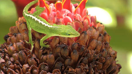 Green lizard on tropical flower