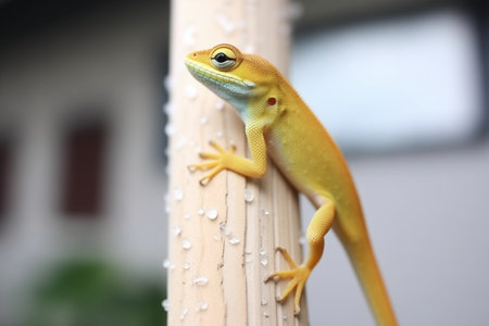 A yellow lizard basking in the sun