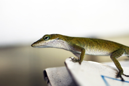 Green Anole Lizard Anolis carolinensis with reflection Shallow DOF