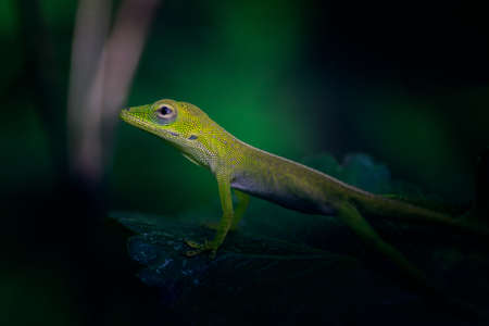 Green Anole Lizard Anolis carolinensis in Garden Shallow DOF